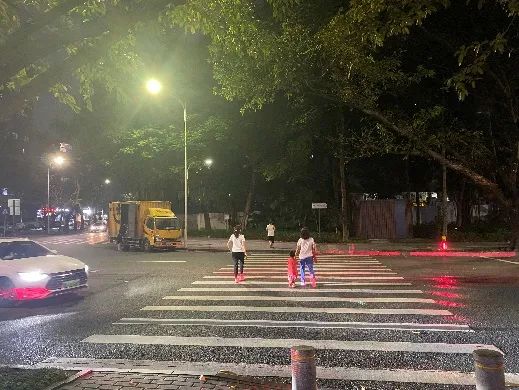 夜晚,路口車速明顯加快,特別雨霧天氣、對(duì)面車輛燈光影響等視線不足情況下,司機(jī)很難及時(shí)識(shí)別到過馬路的行人,這就非常危險(xiǎn)。