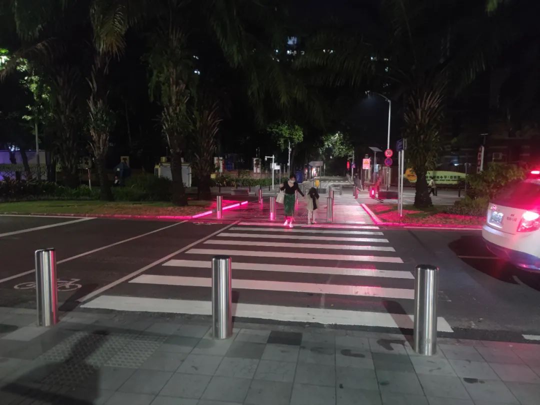 近期,深圳市交通運(yùn)輸局福田管理局在香梅路和商報(bào)路交匯路口以及農(nóng)園路和潤(rùn)園路交匯路口人行橫道先行安裝啟用了「人行橫道激光安全警示裝置」。